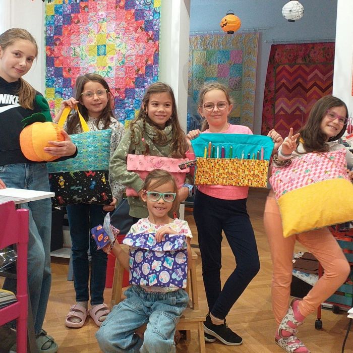 Geeignet für Kinder im Alter von 5-16 Jahren als interessante und kreative Kinderaktivität. Kinder nähen an der Nähmaschine BERNINA und lernen Schritt für Schritt verschiedene Nähtechniken des Patchworks, von einfachen kleineren Nähprojekten bis hin zu komplexeren größeren Projekten. Wir organisieren verschiedene Nähkurse für Kinder: