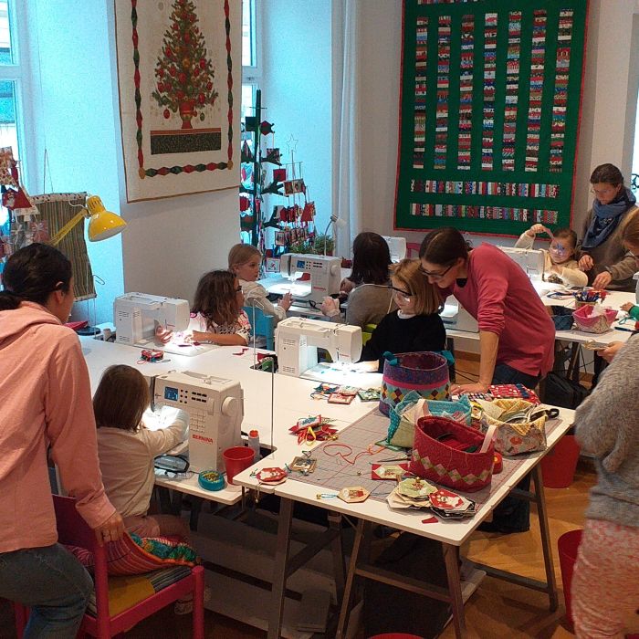 During sewing courses, children sew on the sewing machines BERNINA and they learn step-by-step various sewing techniques, from simple smaller projects to more complex larger projects.
