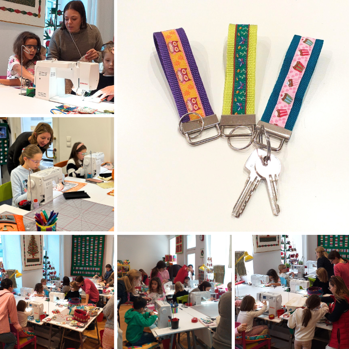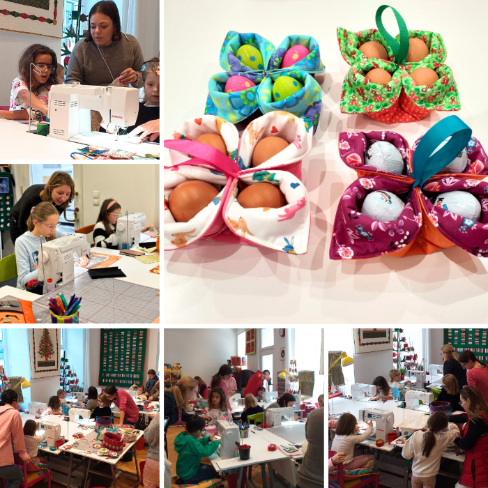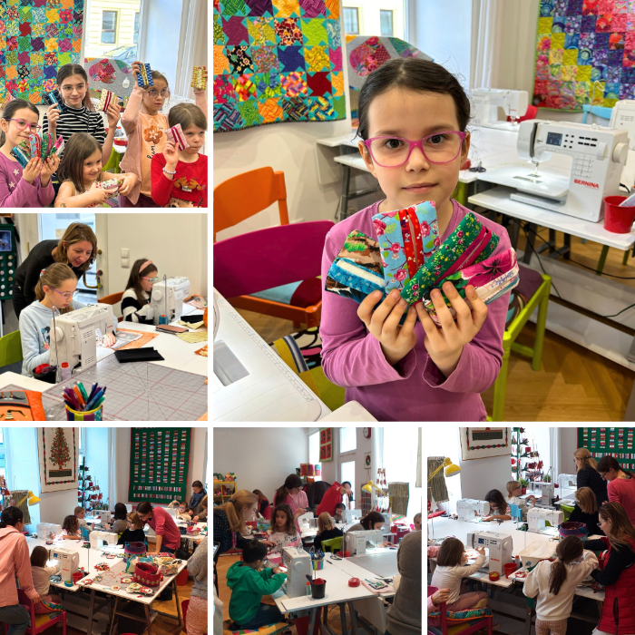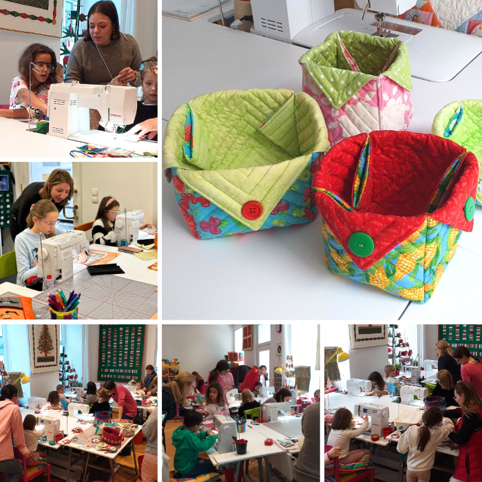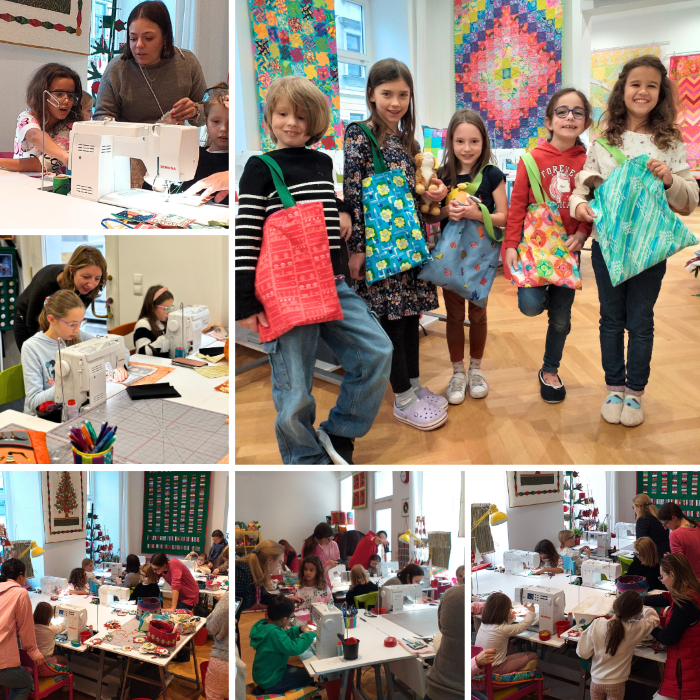 They learn how to use sewing machine, how to use patchwork tools and sewing tools, how to cut fabrics and how to combine them into beautiful products. Children take their finished products home.